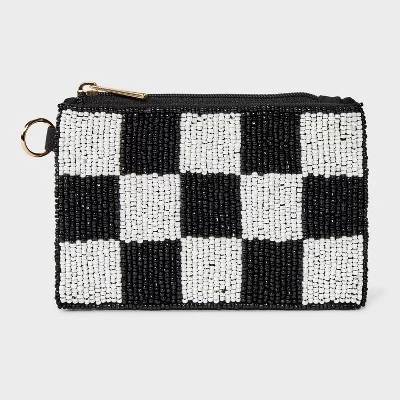 Add a classic appeal to your accessories collection with the Checker Beaded Pouch from Universal Thread™. This pouch features a checkered pattern designed with black and white beads for an artistic appeal. Designed with a cotton shell, this beaded pouch has a zipper closure to help keep your cosmetics, cell phone, and other essentials nicely contained. Plus, it comes with loops to help you attach a strap for easy carrying.