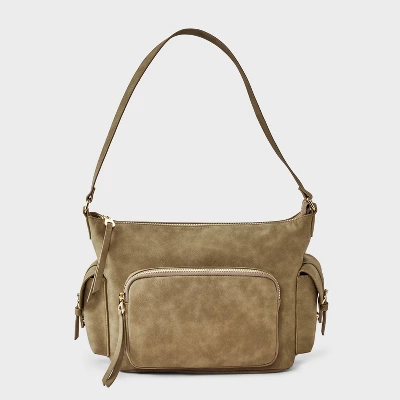 Make your everyday travel more convenient with your essentials nicely contained in the Everyday Cargo Shoulder Bag from Universal Thread™. This shoulder bag features a main compartment with interior and exterior pockets, providing ample space for your cell phone, cosmetics, and other essentials. Made of faux suede, this lightweight bag features a zipper closure to keep the contents secure and a single strap for easy carrying.
