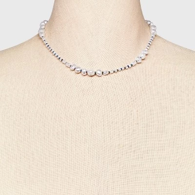 Finish off your ensemble in charming style with this Mixed Simulated Pearl Beaded Necklace from Universal Thread™. This necklace features multiple mixed faux-pearl beads on the chain to create a gorgeous look you’ll love flaunting. This accessory fastens with a classic lobster-claw clasp closure for secure and easy wear. Add this beaded necklace to your dress or jeans and T-shirt for an instant pop of style.