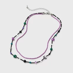 Semi-Precious Onyx Lepidolite Malachite Beaded Necklace Set 2pc – Universal Thread™