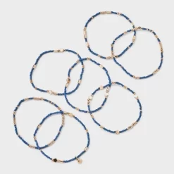 Floral Beaded Bracelet Set 7pc – Universal Thread™ Blue: Glass Acrylic Zinc Alloy Stretch Jewelry