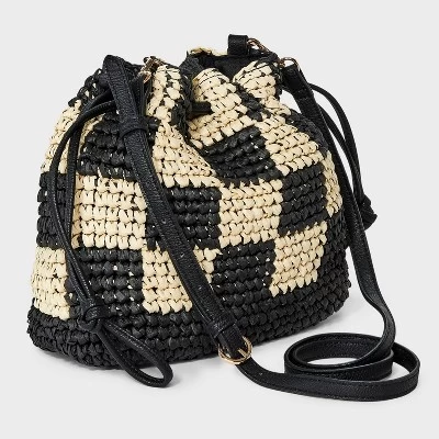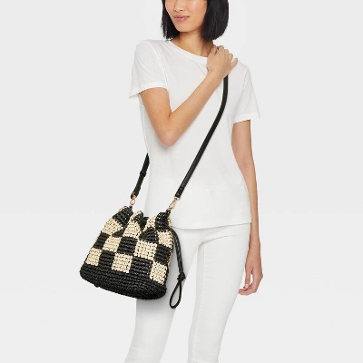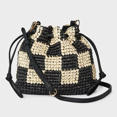 Add a perfect finishing touch to your casual ensembles with this Straw Checker Drawstring Crossbody Bag from Universal Thread™. Beautifully crocheted from straw and paper, this checker unstructured crossbody bag is designed with a spacious main compartment, side pockets and a zip pocket to keep your essentials separate and organized. Plus, it includes a drawstring closure and an adjustable strap for easy carrying.