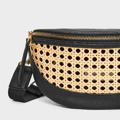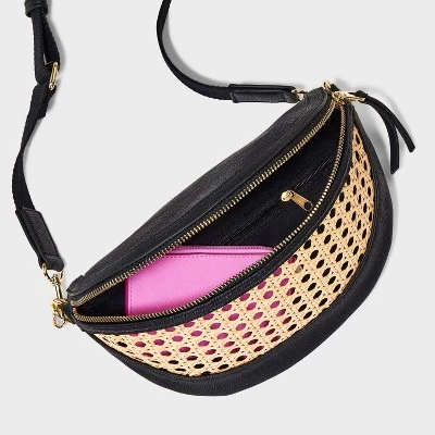 Carry your small personal items in a simplistic style with the Straw Detail Belt Crossbody Bag from Universal Thread™. This crossbody bag features faux-leather construction with straw detailing on the front to elevate the look. It has an inner pocket to help keep your cards and other items separate. The zipper closure keeps the contents secure, and the adjustable strap allows easy carrying.