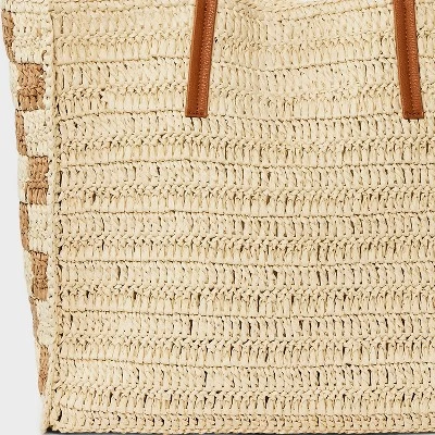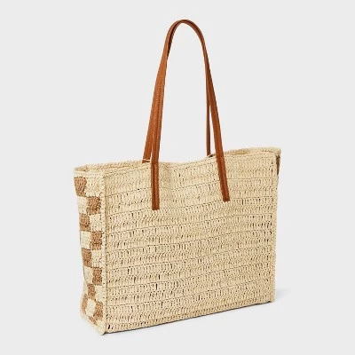 Head out in style with this Straw Packable Checker Boxy Tote Handbag from Universal Thread™. Beautifully crocheted from straw and paper, this checker unstructured tote handbag is designed with a spacious main compartment to stash away items while you’re on the go. Plus, the double top handle allows for convenient carrying.