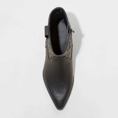 Two-step in standout style with these Twyla Western Boots from Universal Thread™. Complete with a smart 2.25-inch block heel and a classic pointed-toe front, they feature a faux-leather design with metal studs perfect for adding flair to any outfit. Plus, the soft memory foam insole offers comfortable walking and dancing, while a side zipper makes for easy on and off.