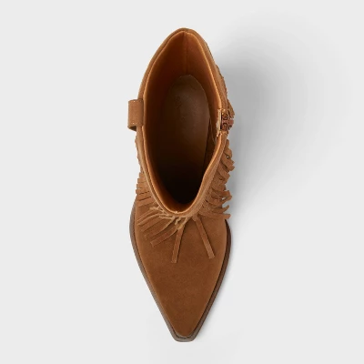 Add a fun Western twist to your shoe collection with the Austin Fringe Western Ankle Boots with Memory Foam Insole from Universal Thread™. Made from polyester fabric in tan, these Western boots have memory foam insoles for comfortable walking. Designed with pointed toes and approximately 2.25-inch block heels, these boots also feature fringe detailing for a whimsical finishing touch.