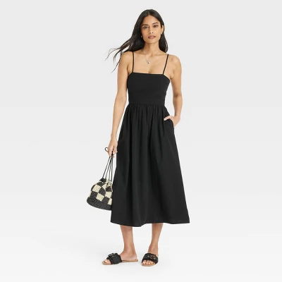 Get ready for casual dates or nights out with friends in this Corset Midi A-Line Dress from Universal Thread™. The sleeveless A-line dress is made of cotton-blend woven fabric for comfortable wear and features a square corset upper with a backless design for a flattering fit. Designed with adjustable spaghetti straps to help you find the right fit, the corset dress also sports a side pocket to keep your essentials close at hand.