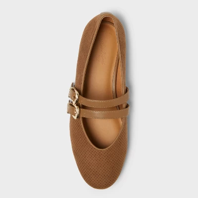 Embrace timeless elegance with these Henrietta Double-Strap Mary Jane Flats with Memory Foam Insole from Universal Thread™. These closed-toe shoes boast an elegant faux-suede upper with perforations and a faux-leather double-strap instep featuring shiny metal buckles, making them perfect for any occasion from weekend brunches to evening parties. Set on a memory foam insole, the classic Mary Jane silhouette with a round toe is a versatile addition to your shoe wardrobe.