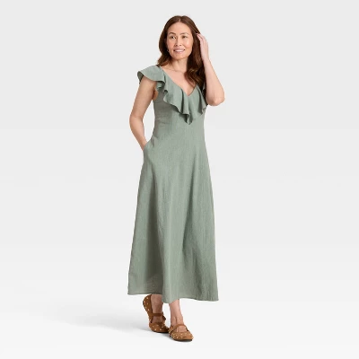 This Ruffle Maxi A-Line Dress from Universal Thread™ will be your go-to pick from catching up with friends to heading out for brunch or coffee dates. Made from a lightweight blend of cotton and rayon, this sleeveless dress offers breezy all-day comfort. It’s fashioned in a solid shade, framed by a flattering V-neckline with a cascading ruffle frill that continues along the front and back to covers the sleeveless cut with a lovely look. Tailored in a maxi length with a smocked back, side pocket and a side zipper, the A-line dress combines chic style with hands-free ease.